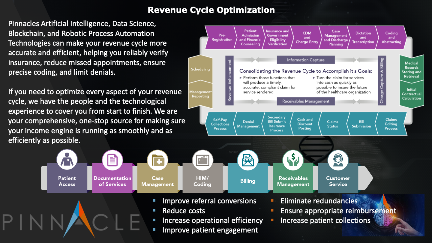 Pinnacle is innovating new ways of doing business. We're using Artificial Intelligence, Quantum Computing, and Blockchain technologies to bring our clients transformational Healthcare solutions.